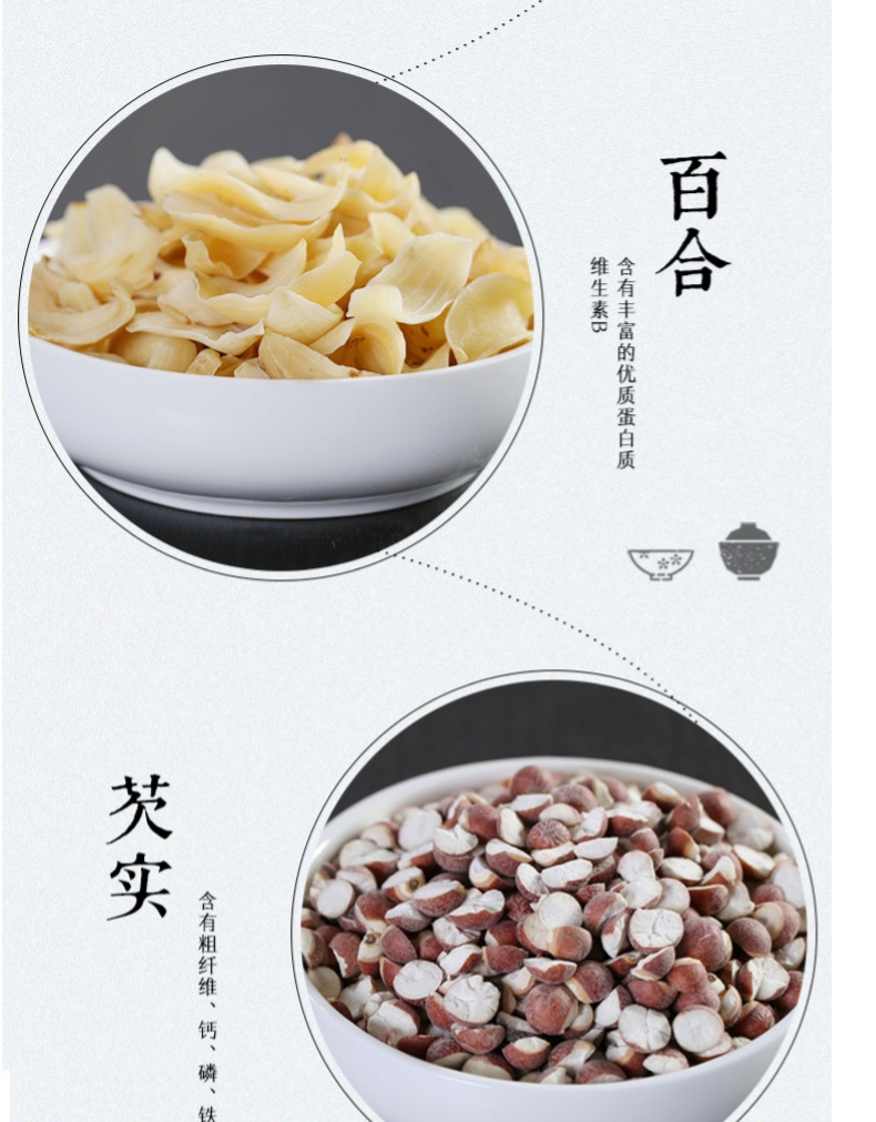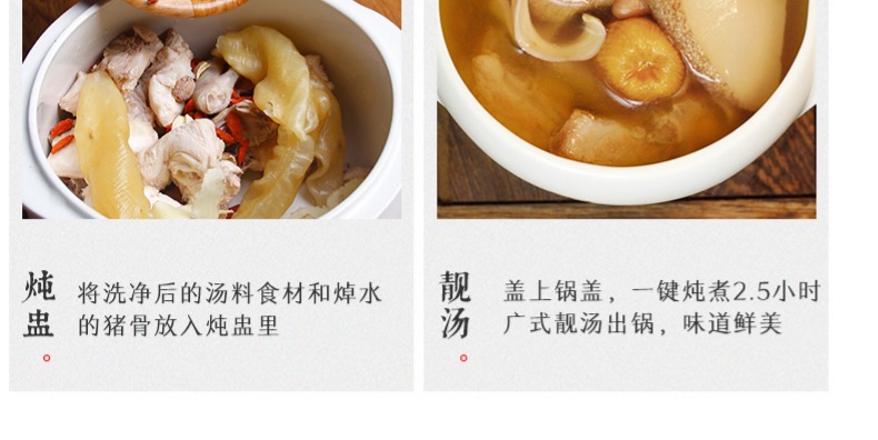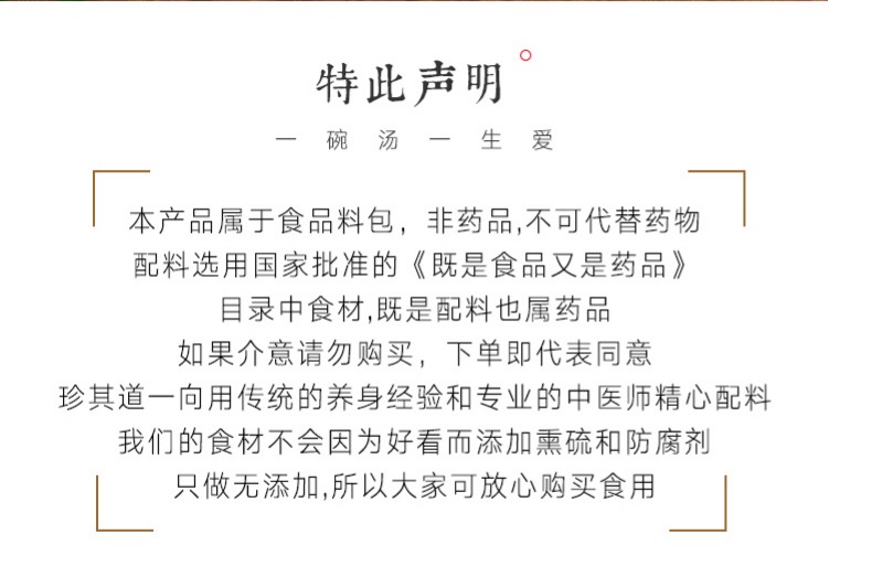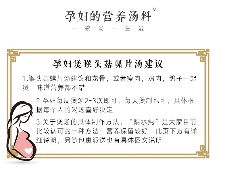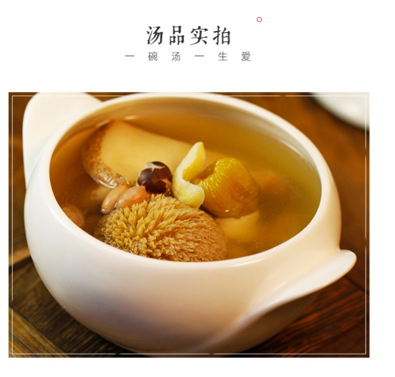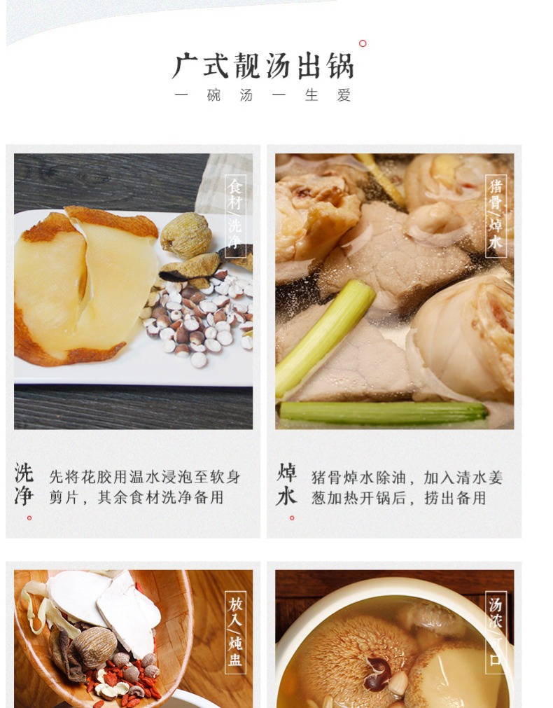 • 配料:螺片(干海螺肉)、芡實(shí)、猴頭菇、蜜棗、百合、花生、陳皮