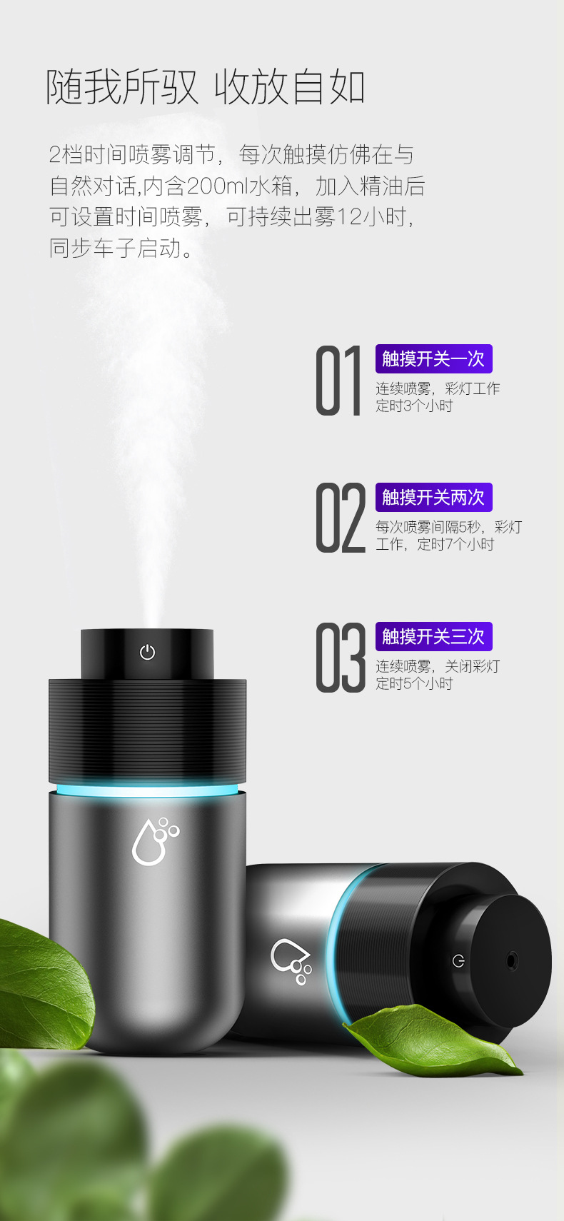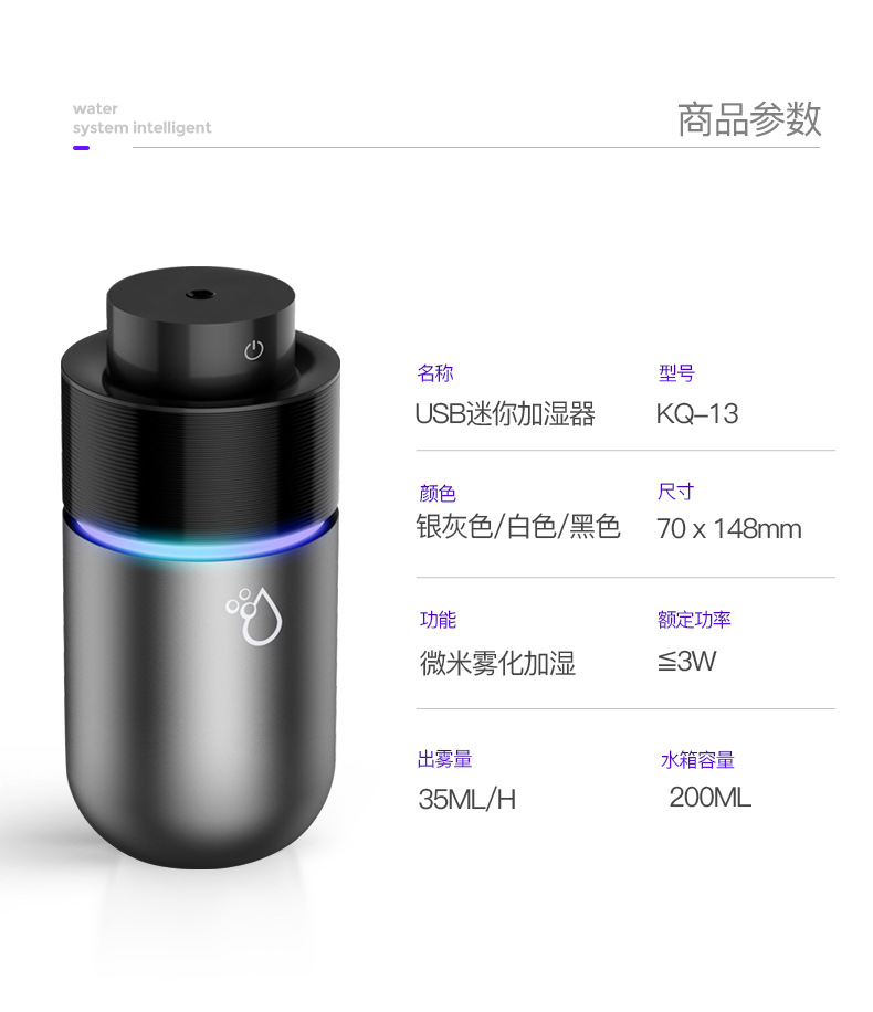 汽車(chē)加濕器車(chē)載噴霧空氣凈化迷你氧吧USB車(chē)用香熏機(jī)除異味KQ-13